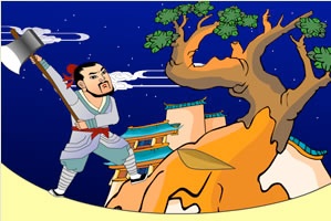 On a clear night sky of the fifteenth day of the eighth month of the lunar calendar, it is believed that mankind on earth can see a shadow of a man chopping on a huge tree. This man is believed to be Wu Gang of the Han Dynasty, a lumberjack by trade. To obtain immortality, he took on the job of chopping down the Osmanthus tree in front of the Moon Palace. Each time Wu Gang chopped it down, the tree would immediately spring back to its original form. Thus each Mid Autumn Festival, Wu Gang must once again chop down the tree in front of the Moon Palace.